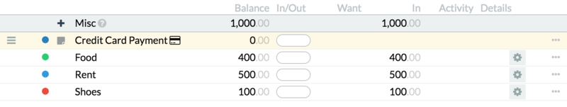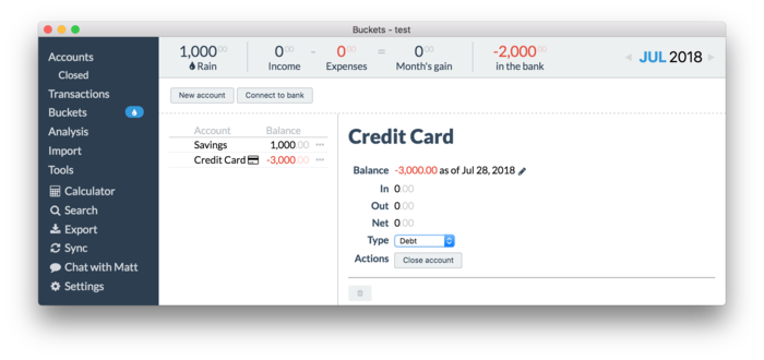 Suppose you have $1,000 in Savings and a credit card debt of $3,000. That might look like this in Buckets: